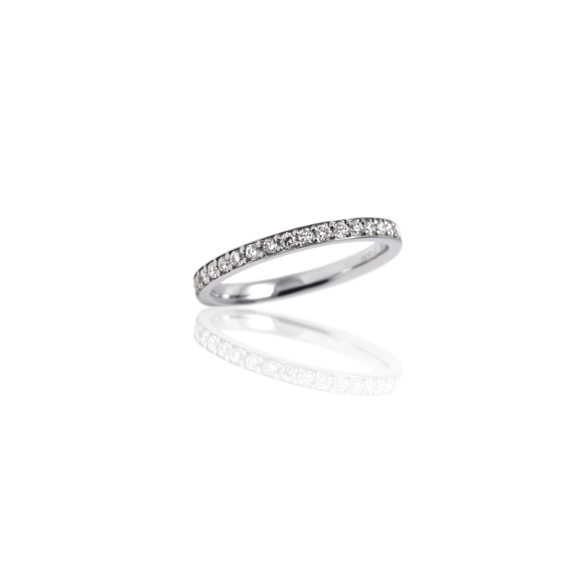 繊細に連なるダイヤモンドが、角度を変えるたびに上品な輝きを放ちます。